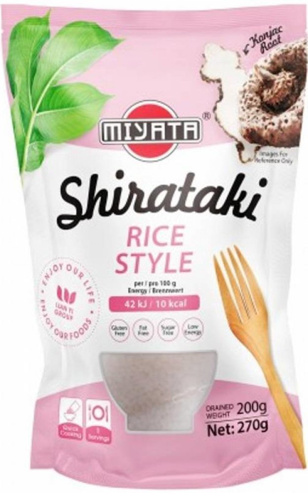 Nudle Shirataki - rýže jsou nízkokalorickou alternativou klasické rýže. Vyrábí se z kořene rostliny konjak, známé také jako "ďáblův jazyk". Tyto nudle jsou bez lepku, téměř bez kalorií a sacharidů, což z nich činí oblíbenou volbu pro ty, kteří sledují svůj příjem kalorií nebo dodržují nízkosacharidovou dietu.