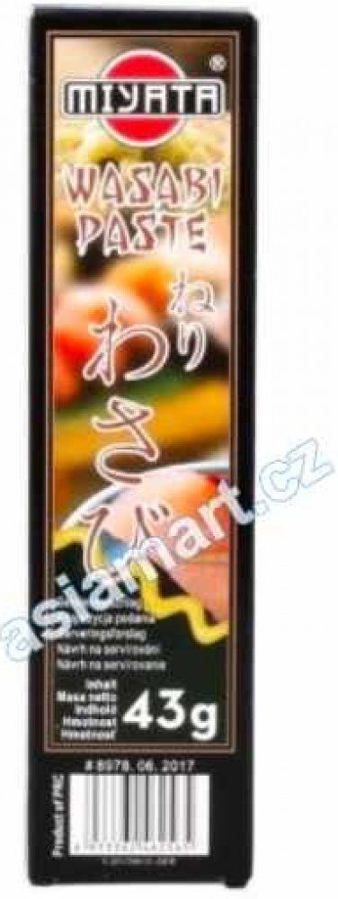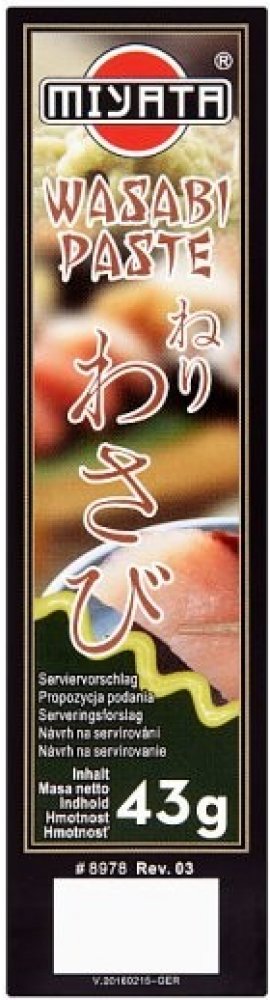 Složení: pitná voda, strouhaný křen 19%, zvlhčující látka E420, sójový olej, kukuřičný škrob, jedlá sůl, maltodextrin, strpouhaný křen wasabi 1,6%, kurkuma...