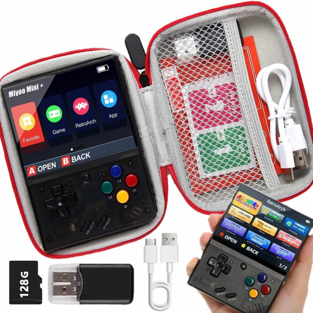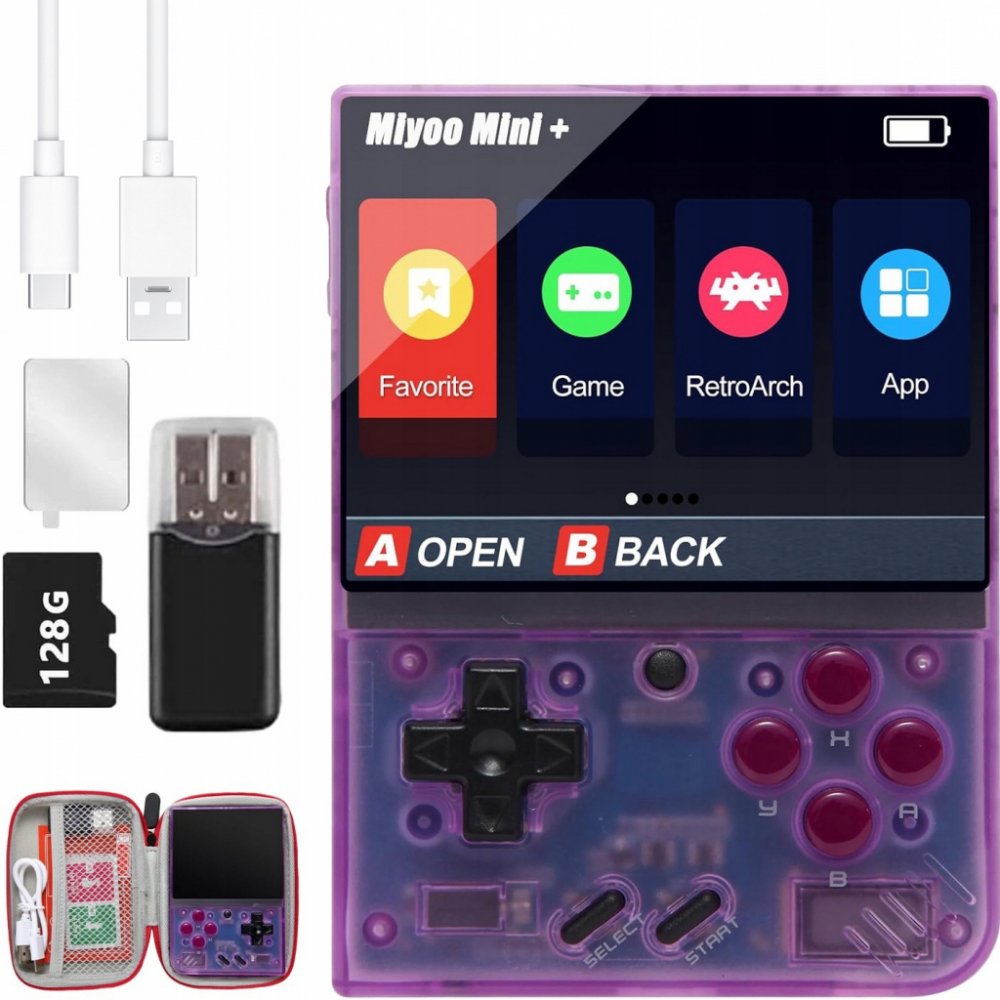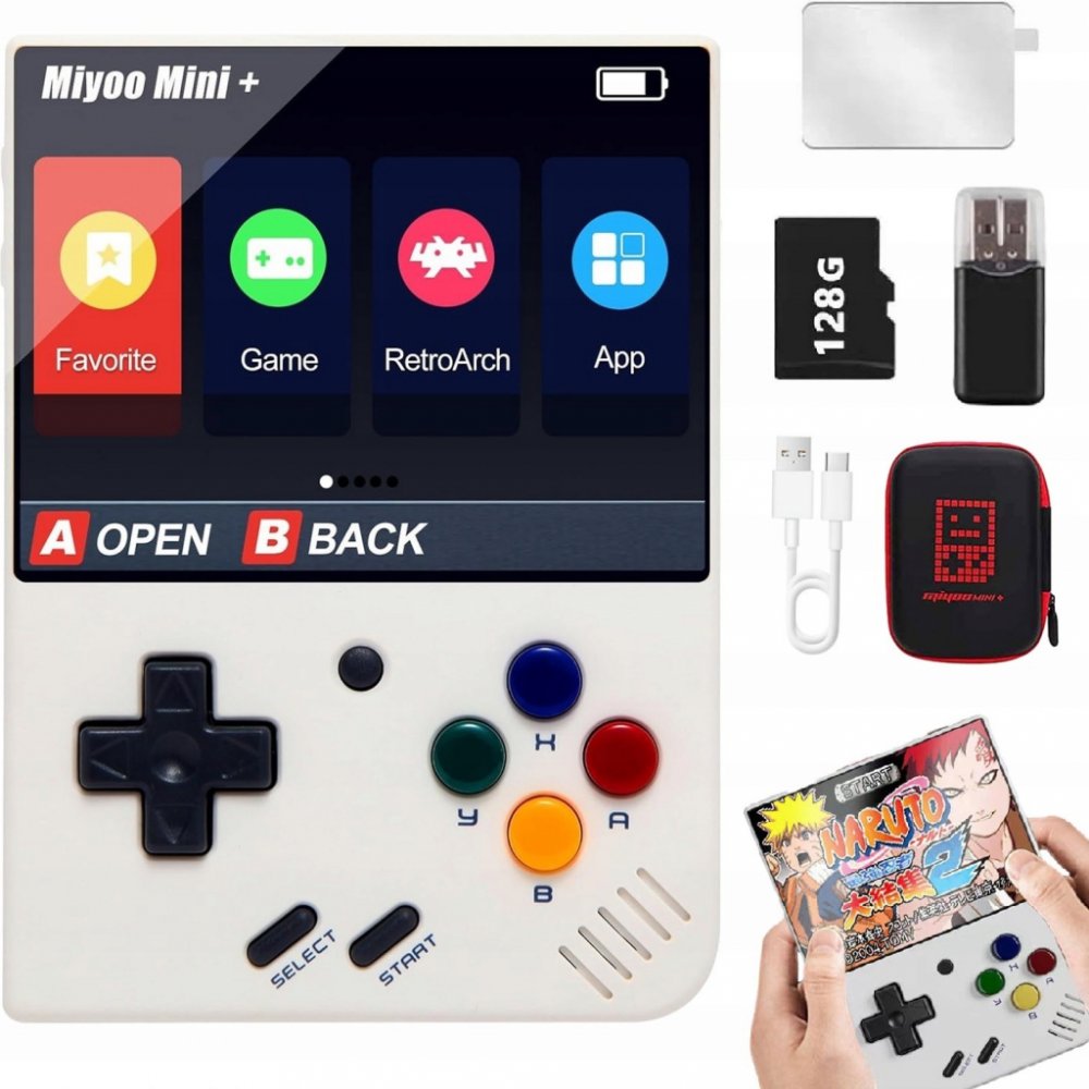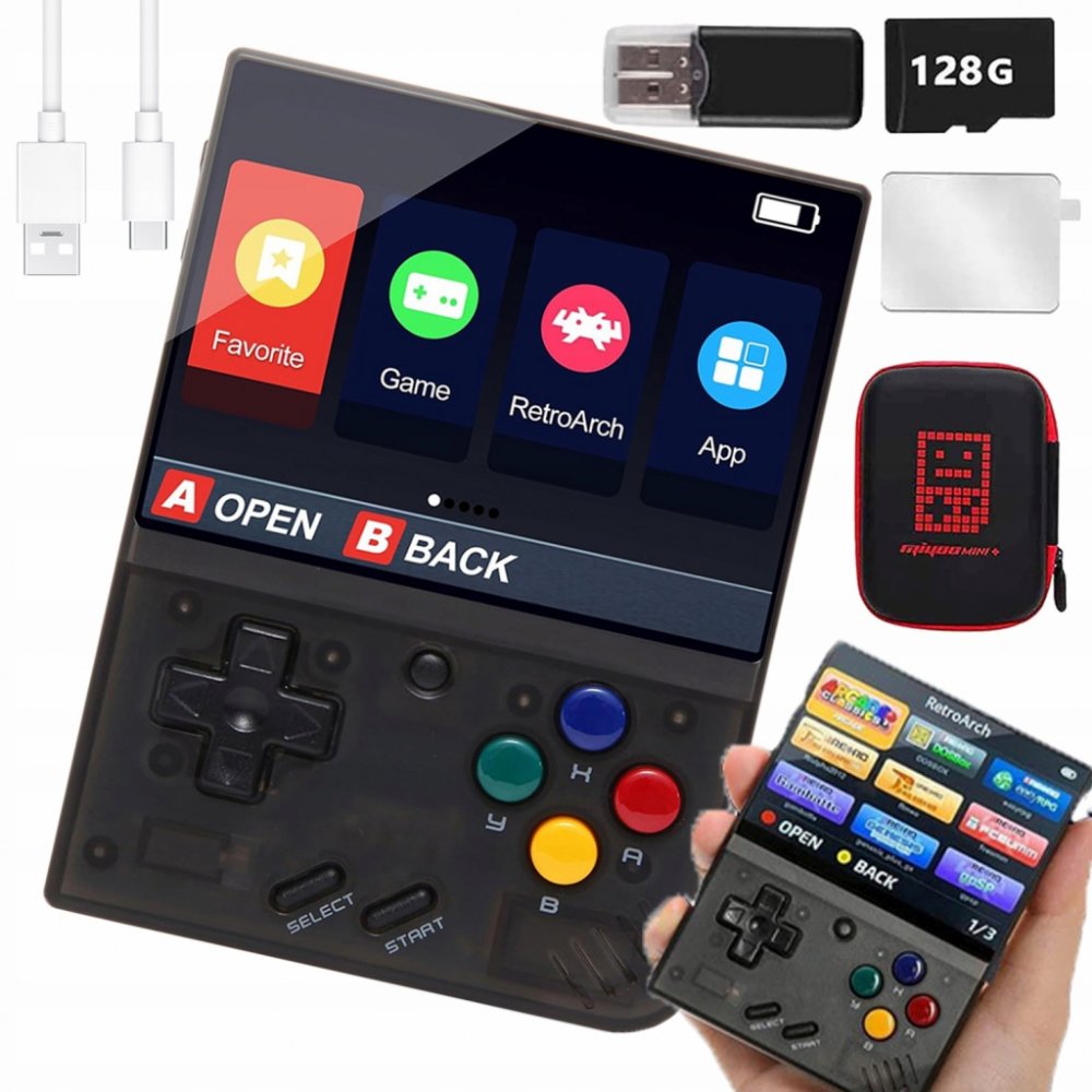 Konzole Miyoo Mini Plus, USB-C kabel, Micro SD 64 GB (bez her), Ochranné sklo na displej