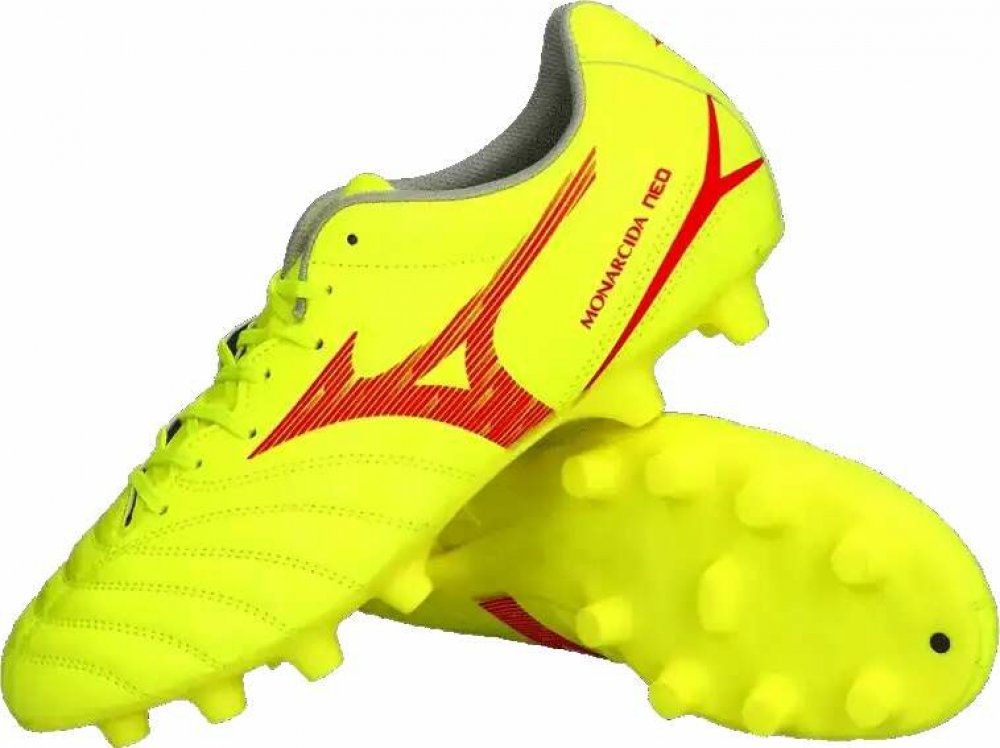 Zlepšete svou hru s těmity pánskými kopačkami Mizuno. Pánské kopačky lisovky Mizuno Monarcida Neo III Select FG ve žlutém provedení jsou skvělou volbou pro začínající hráče, kteří hledají výkon v kombinaci s pohodlným širokým střihem.