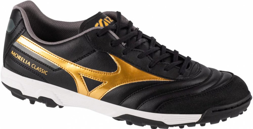 Pánské kopačky turfy Mizuno Morelia Sala Classic TF v černém provedení mají tradiční design v kombinaci s inovativním střihem. Měkký a pružný svršek podpořený svářečským logem na boku poskytuje skvělý pocit naboso a vynikající kontrolu nad míčem. Pultík na patě poskytuje skvělou oporu, zlepšuje tlumení a dodává pocit naprosté jistoty. Vlastnosti a výhody: Syntetický svršek se skvělým komfortem a přizpůsobením poskytuje měkký dotek míče a vynikající flexibilitu. Ponožková vložka Zero-Glide pro lepší držení nohy. Neznačící gumová podrážka je navržena tak, aby poskytovala citlivou přilnavost. Kopačky typu TF (turfy) - jsou určeny pro umělý trávník. Vhodnou volbou jsou také na štěrk, sníh nebo led.