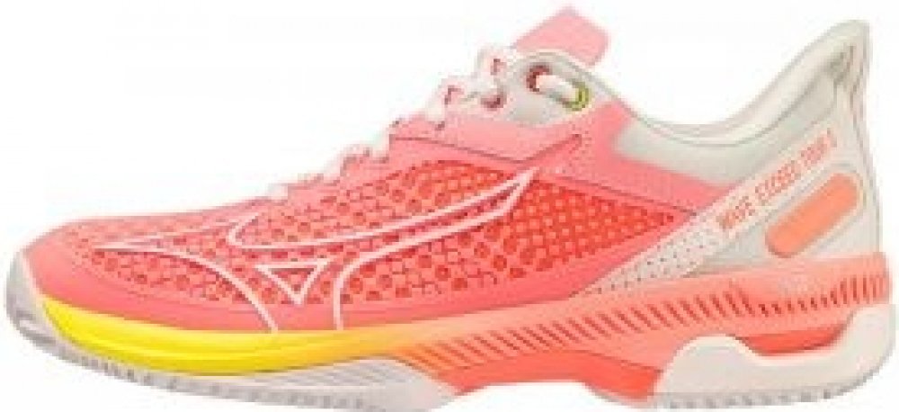 Dámské tenisové boty Mizuno Wave Exceed Tour 5 CC - candy coral/snow white/neon flame Model Wave Exceed Tour 5 byl vyroben z vysoce kvalitních materiálů a s použitím pokročilých technologií. Je určen pro náročné hráče, pro které je nejdůležitější perfektní odpružení, stabilizace a odolnost. Svršek vyrobený z vysoce kvalitního syntetického materiálu s velkým množstvím otvorů zajišťuje správné držen...