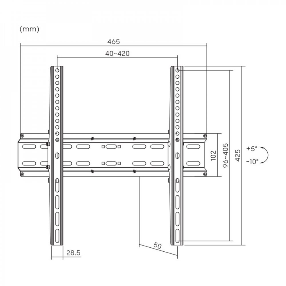 Držák na TV do úhlopříčky 65" i větší, u kterých je maximální rozteč VESA 400 × 400 mm. Nosnost držáku 35 kg, Sklopný, vzdálenost televize od zdi od 50 mm, Rozsah sklopení +5° až -10°, Balení obsahuje potřebné montážní šrouby, podložky a hmoždinky pro pevné zdivo.Vlastnosti:● Typ držáku na TV: Naklápěcí● Instalace držáku: Pevná zeď● VESA max./rozsah uchycení (mm) : 400×400 mm● Kombinace VESA: 200x...