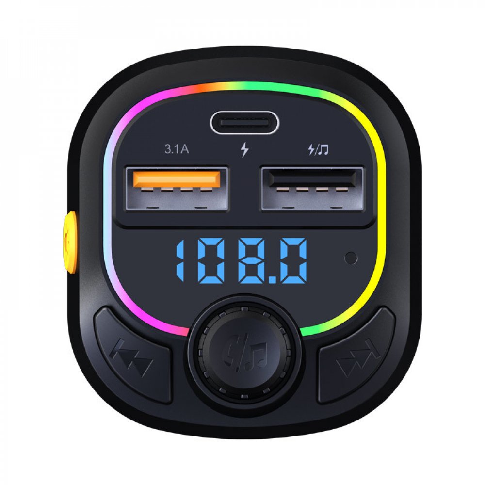 FM Transmitter s Bluetooth a USB nabíječkou 5 V / 3,1 A, displej, 2× USB + 1× USB-C, přehrávání souborů mp3. Handsfree pro bezpečnou jízdu. Ovládací tlačítka pro regulaci přehrávání a ovládání handsfree či bluetooth. Frekvenční rozsah 87,5 - 108 MHz. . N