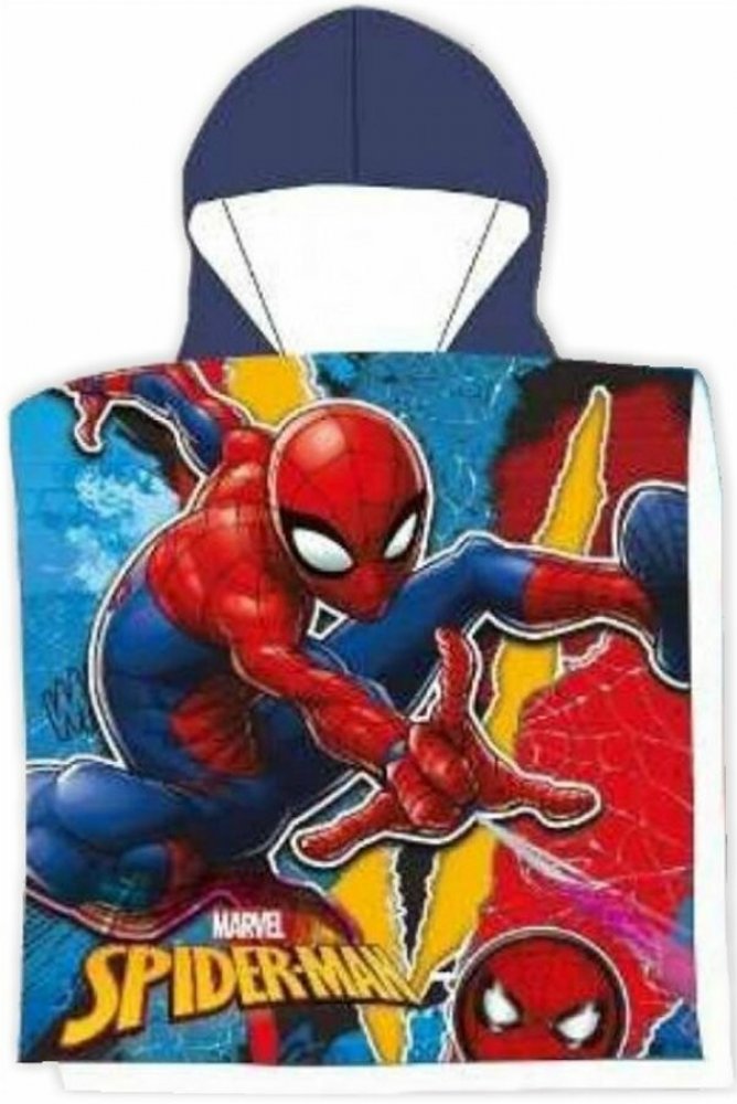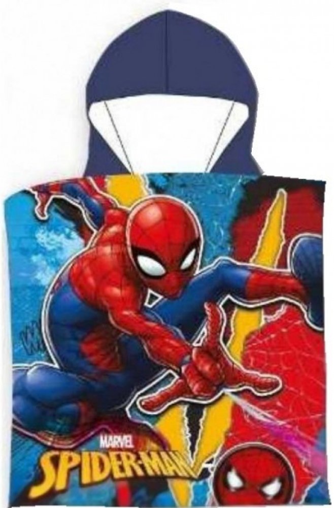 Dětské koupací pončo pro kluky / chlapecká bavlněná osuška s kapucí Spiderman - MARVEL. Toto osuškové pončo je vyrobené z příjemně jemného a dobře savého 100% bavlněného froté s gramáží 320 gr./m². Je ideální nejen na doma po koupeli, ale i na koupaliště, nebo na pláž. Rozměry tohoto dětského ponča Spiderman jsou 55 x 110 cm (přední část 55 x 55 cm + záda 55 x 55 cm).