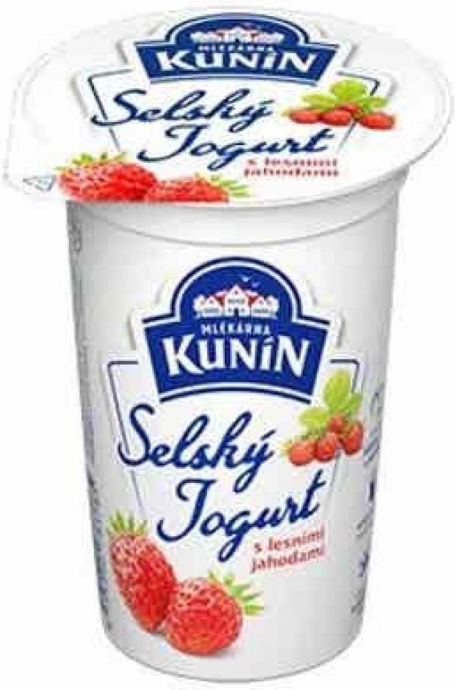 Cena se může v jednotlivých regionech lišit. -- Kunín Selský jogurt je hustý a přírodní. Je vyráběn tradičním způsobem zrání v kelímku díky čemuž má lámavou, hustou texturu. Zároveň je přírodním zdrojem vápníku a obsahuje zdraví prospěšné Bifidobakterie a Laktobacily. Kunín Selský jogurt s lesními jahodami má jemnou, přírodní chuť lesní jahody. Navíc má nízký obsah tuku.