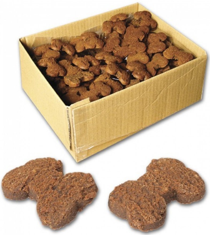 Pochoutky pro psy - biskvit kostičky, doplňkové krmivo pro psy Složení: obiloviny, cukry, maso a vedlejší produkty živočišného původu (min. 4% drůbeží), tuky a oleje, vedlejší produkty rostlinného původu. Analýza: hrubý protein 13,6 % hrubý tuk 7,6 % vlhkost 12,1 % hrubý popel 6,3 % hrubá vláknina 0,2 % Krmná dávka: do 15 kg 1-3 kostičky / den 15-30 kg 3-5 kostiček / den nad 30...
