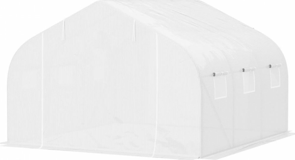 Skleník 6 rolovacích oken, dveře na zip, fólie odolná proti roztržení, kovový rám, 3,5 x 3 x 2 m, bíláspeciální funkceVelký tunelový skleník: Náš skleník Outsunny nabízí vašim rostlinám ideální prostor pro růst a prosperitu! Skleník ochrání vaše rostliny před chladem, zvířaty a bouřkami a poskytne jim potřebné teploTransparentní fólie: Naše dvouvrstvá 140 GSM PE fólie má uprostřed vyztužující mříž...