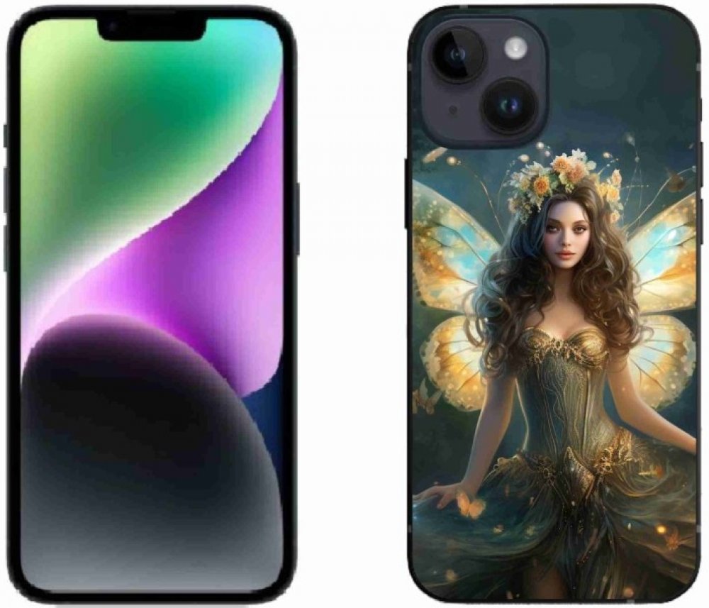 Motýlí pouzdro na iPhone 14 - motýlí žena poskytuje všechny výhody gelových krytů, a to v zajímavém designu.