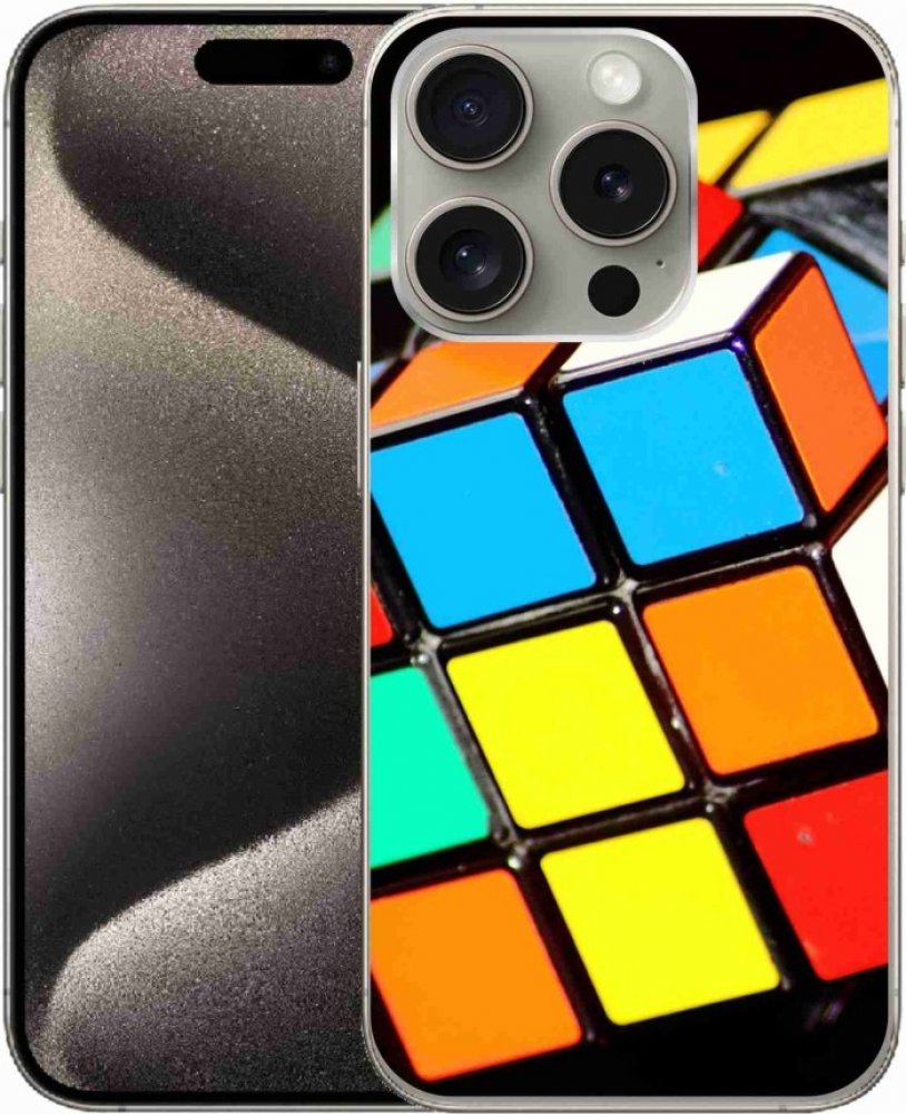 Pouzdro s motivem rubikova kostka na iPhone 15 Pro poskytuje všechny výhody gelových obalů, a to v zajímavém designu.