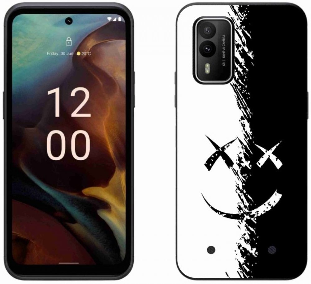 Pouzdro s černobílým smajlíkem na Nokia XR21 poskytuje všechny výhody gelových krytů, a to v zajímavém designu.