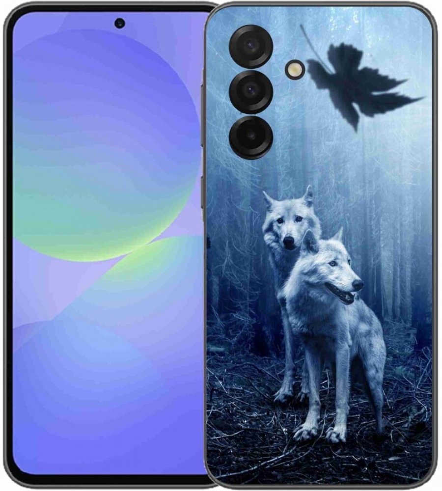 Zvířecí pouzdro na Samsung Galaxy A37 5G - vlci v lese poskytuje všechny výhody gelových obalů, a to v zajímavém designu.