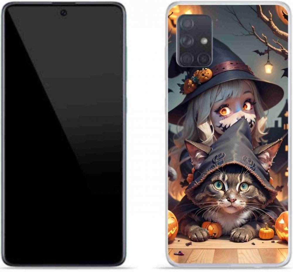 Kočičí pouzdro na Samsung Galaxy A51 - čarodějnice s kočkou poskytuje všechny výhody gelových krytů, a to v zajímavém designu.