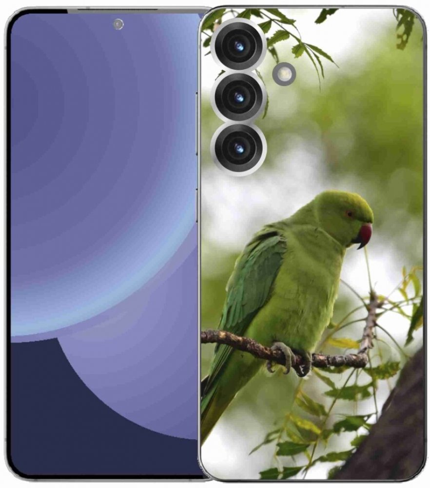 Ptačí pouzdro na Samsung Galaxy S25+ - zelený papoušek poskytuje všechny výhody gelových obalů, a to v zajímavém designu.