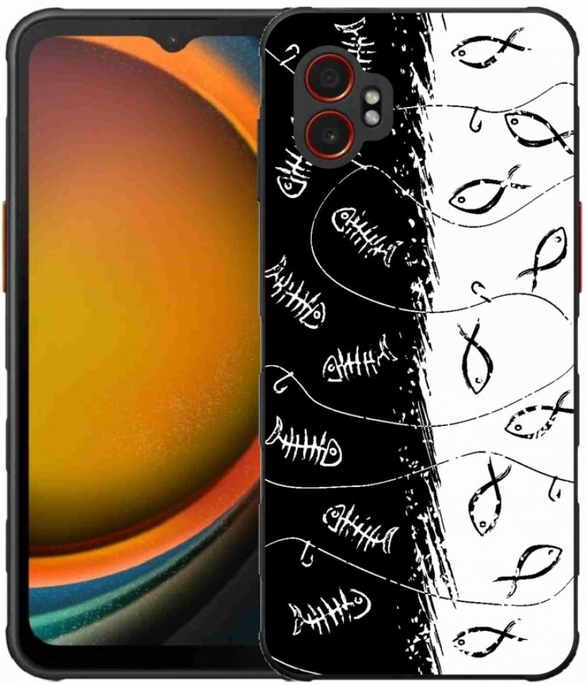 Pouzdro pro rybáře na Samsung Galaxy Xcover 7 Pro - kostry a rybky poskytuje všechny výhody gelových krytů, a to v zajímavém designu.