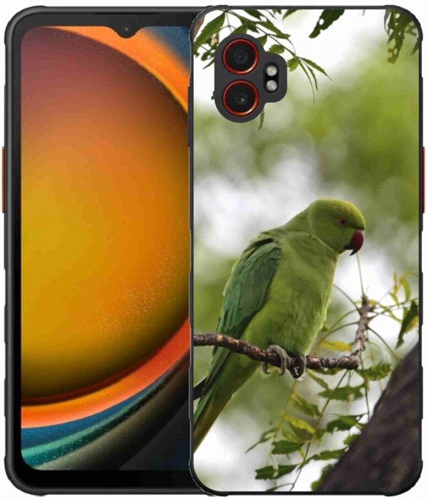 Ptačí pouzdro na Samsung Galaxy Xcover 7 Pro - zelený papoušek poskytuje všechny výhody gelových obalů, a to v zajímavém designu.