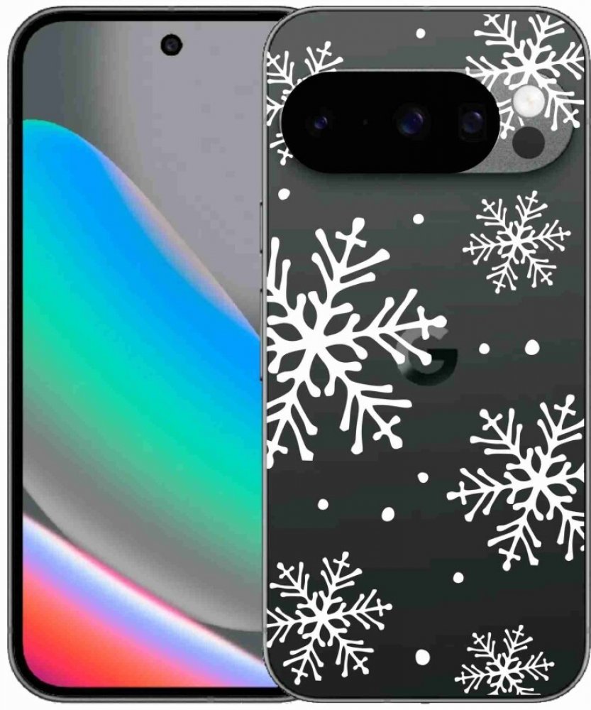 mmCase Gelový Google Pixel 10 Pro bílé vločky na průhledném pozadí