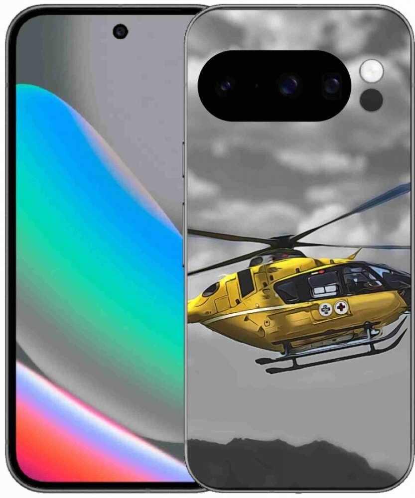 Pouzdro s motivem žluté helikoptéry na Google Pixel 10 Pro poskytuje všechny výhody gelových krytů, a to v zajímavém designu.
