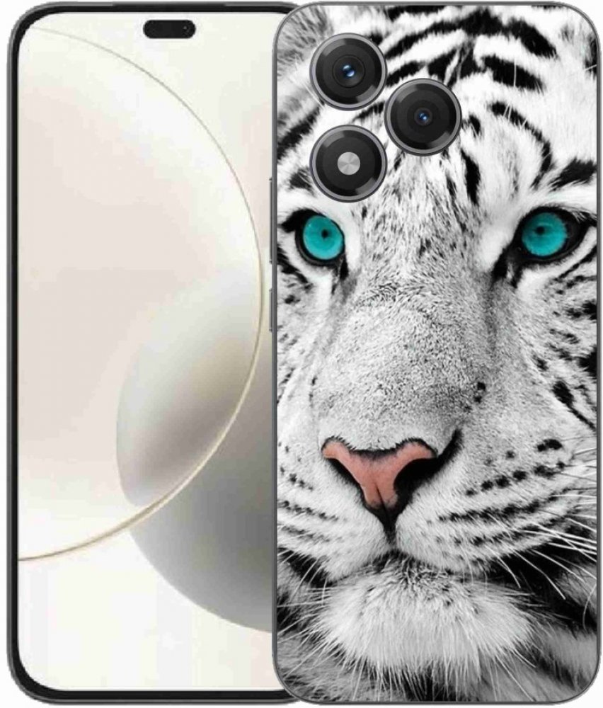 Pouzdro se šelmou na Honor 400 Lite - bílý tygr poskytuje všechny výhody gelových krytů, a to v zajímavém designu.