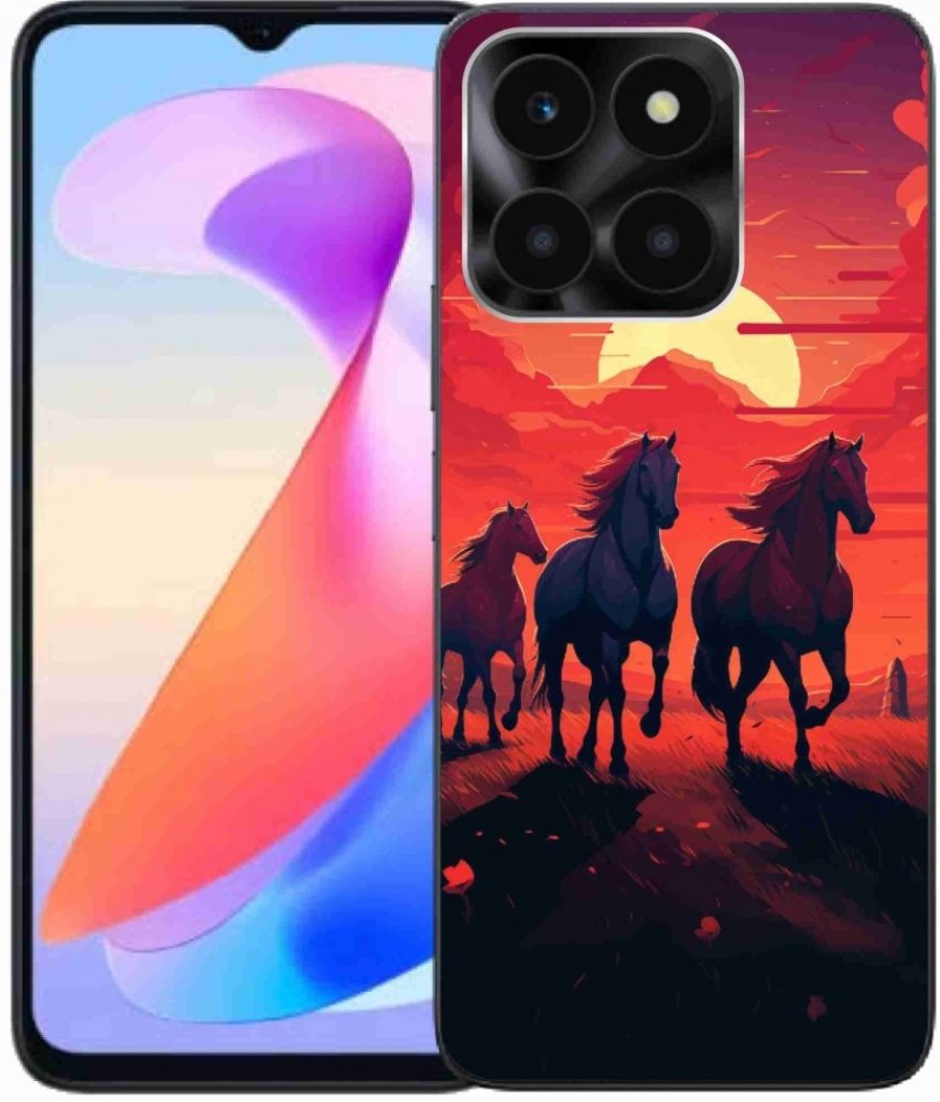 Pouzdro s motivem koně na Honor X6a - koně a západ slunce poskytuje všechny výhody gelových krytů, a to v zajímavém designu.