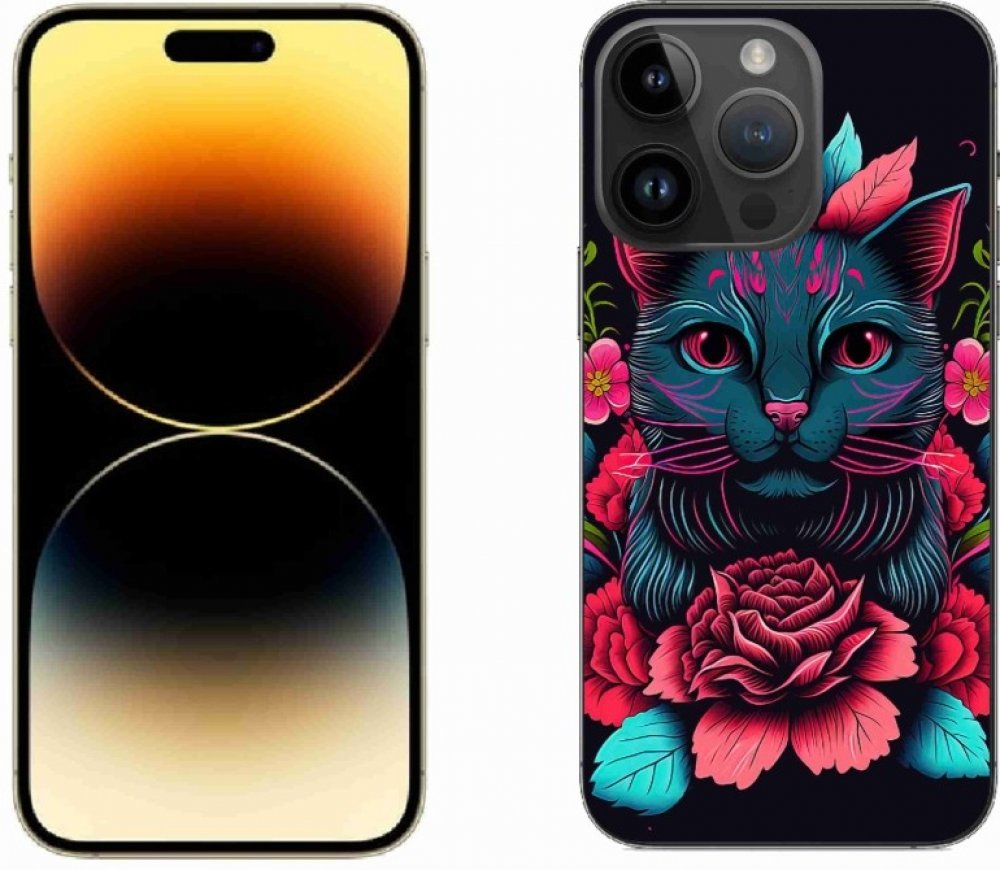 mmCase na iPhone 14 Pro Max květiny a kočka