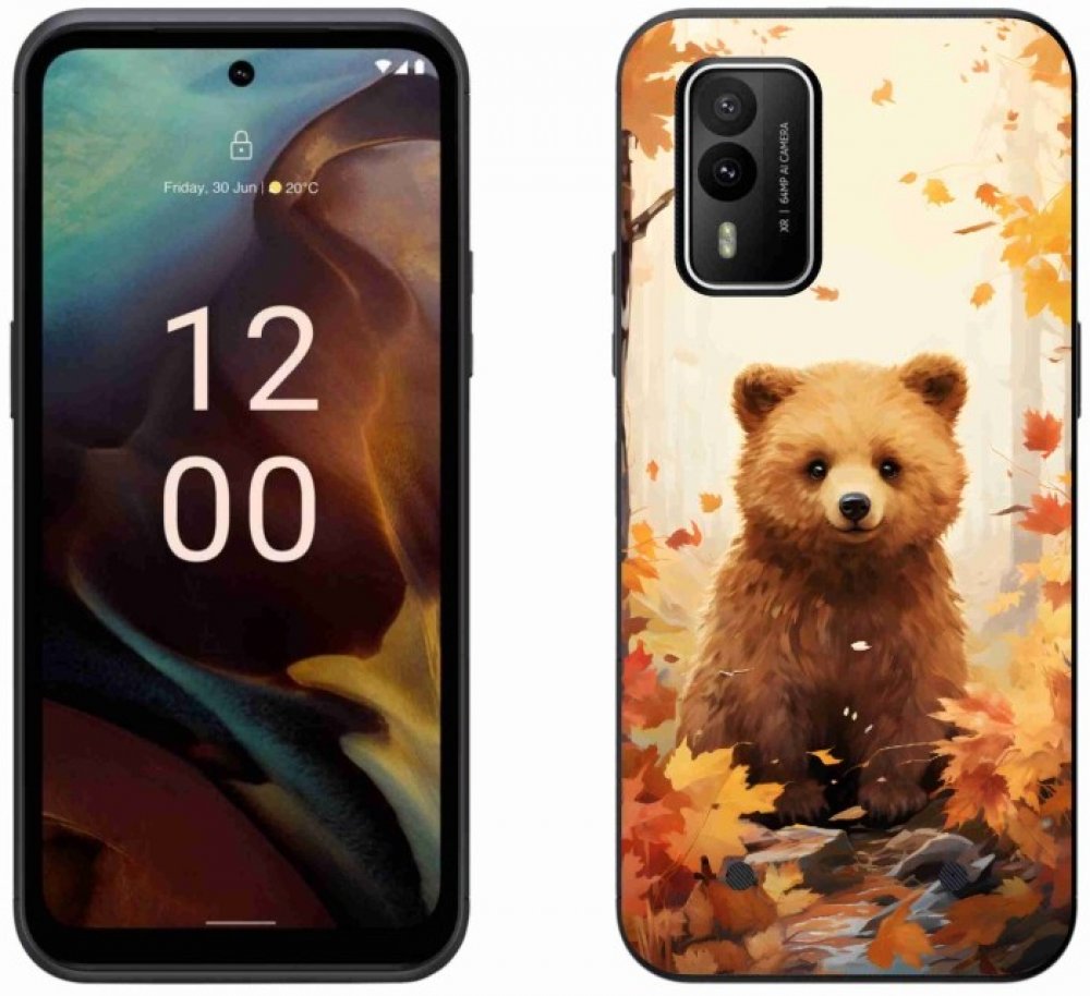 Zvířecí pouzdro na Nokia XR21 - medvěd v lese poskytuje všechny výhody gelových obalů, a to v zajímavém designu.