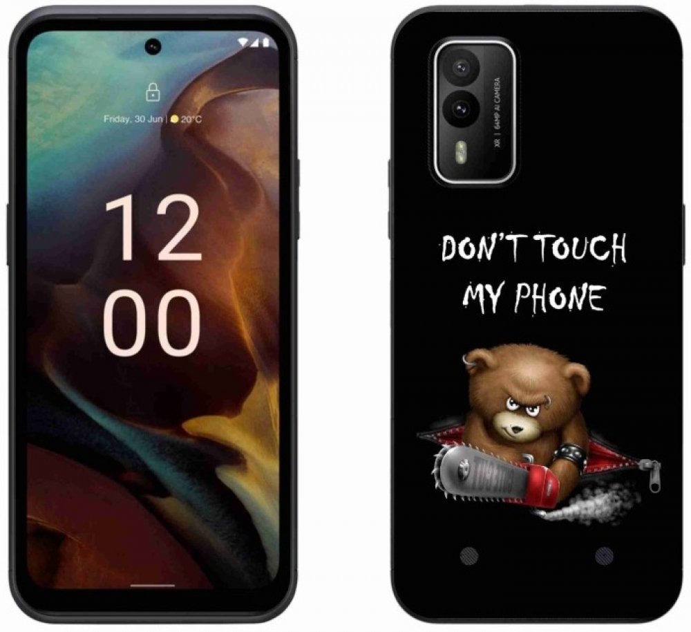 Pouzdro s nápisem nesahej na telefon na Nokia XR21 poskytuje všechny výhody gelových krytů, a to v zajímavém designu.