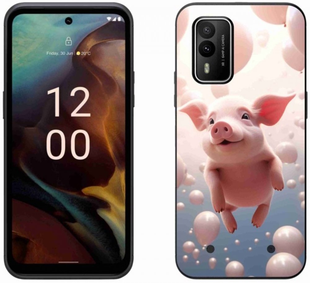 Zvířecí pouzdro na Nokia XR21 - prasátko s balónky poskytuje všechny výhody gelových obalů, a to v zajímavém designu.