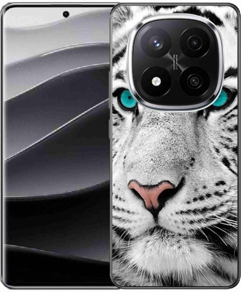 Pouzdro se šelmou na Xiaomi Redmi Note 14 Pro+ 5G - bílý tygr poskytuje všechny výhody gelových krytů, a to v zajímavém designu.