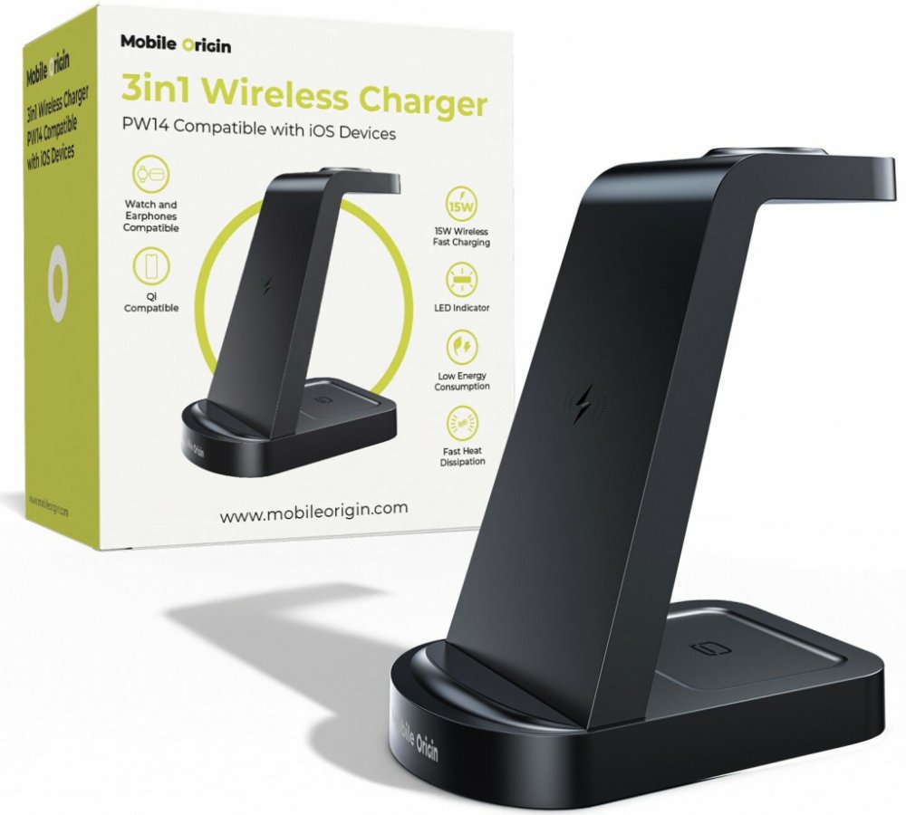 Mobile Origin 3in1 Magnetic Wireless Charger PW14 MagSafe Compatible MO-31MWCH-PW14 (MO-31MWCH-PW14)