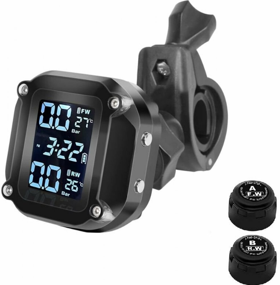Dvě chytré krytky ventilků, které jsou bezdrátově propojené s centrální jednotkou s displejem umístěnou na držáku na řídítkách. Na displeji se během jízdy zobrazuje aktuální hodnota tlaku v pneumatikách a čas.