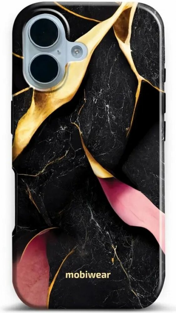Odolný kryt, obal, pouzdro Mobiwear Elite Pro - Apple iPhone 17 - EP35E Černý a zlatavý mramor - dvouvrstvá ochrana, tlumí pády, stylový design, HD tisk, perfektně sedí