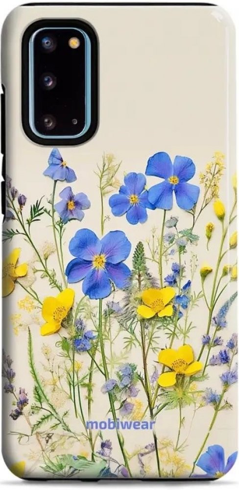 Odolný kryt, obal, pouzdro Mobiwear Elite Pro - Samsung Galaxy S20 - EP41E Modré a žluté kvítky – extra bezpečí, dvouvrstvá ochrana, stylový design a sytá HD grafika