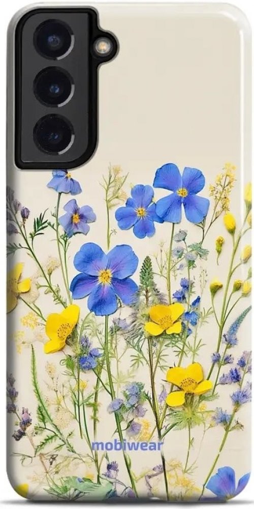 Odolný kryt, obal, pouzdro Mobiwear Elite Pro - Samsung Galaxy S22 Plus - EP41E Modré a žluté kvítky – extra bezpečí, dvouvrstvá ochrana, stylový design a sytá HD grafika