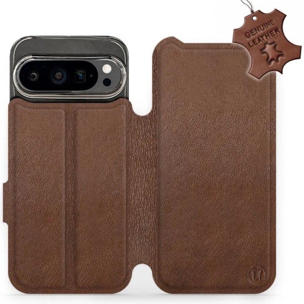 Kožené flipové pouzdro, obal a kryt na mobil Google Pixel 9 Pro - Hnědé provedení, elegantní ochrana, stojánek a magnetické zavírání