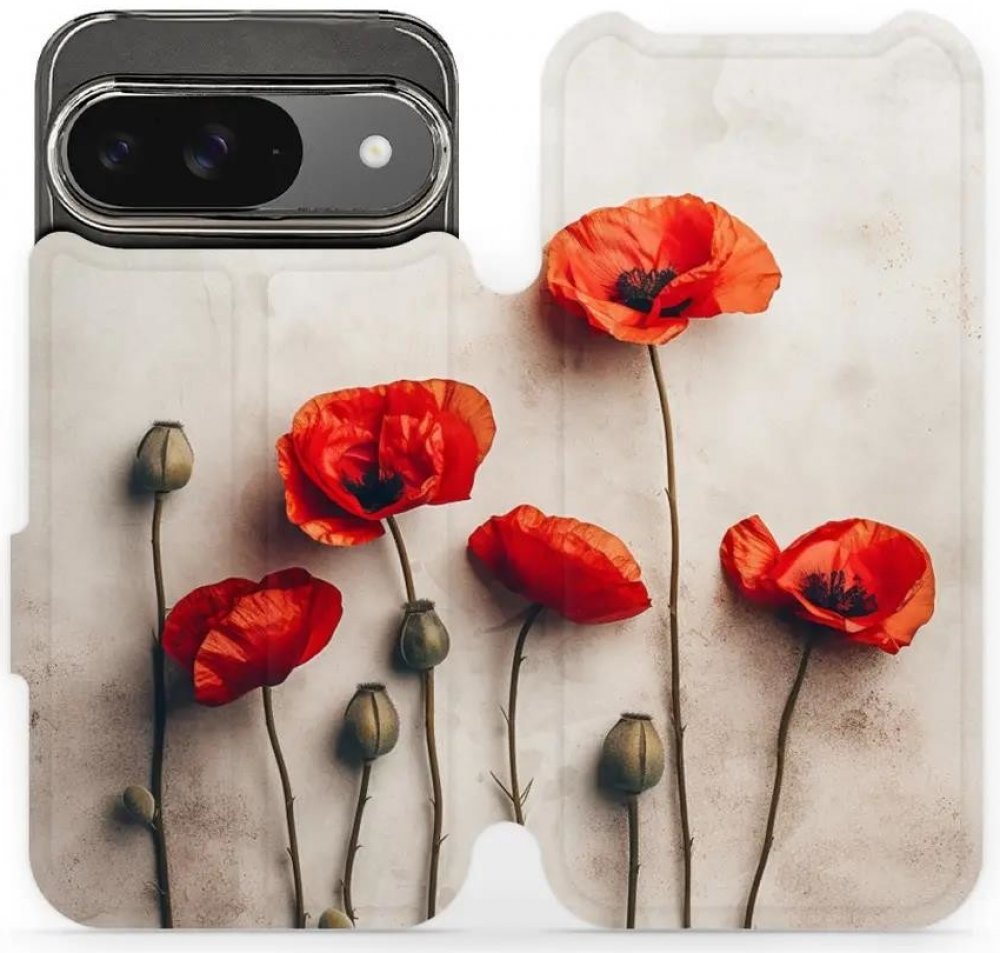 Knížkové pouzdro, obal, kryt Mobiwear na mobil Google Pixel 9 - VP42S Vlčí máky - ochrana celého telefonu, funkce stojánku, odolná TPU vanička, magnetické zavírání, elegantní design