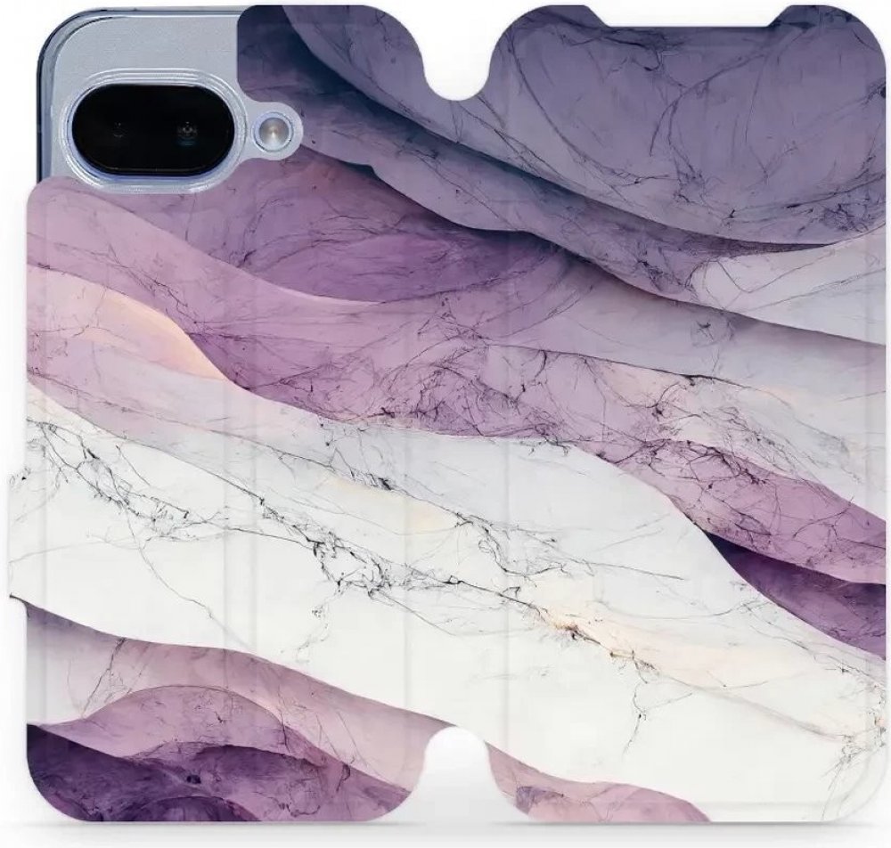 Knížkové pouzdro, obal, kryt Mobiwear na mobil Google Pixel 9A - VP31S Bílý a fialový mramor - ochrana celého telefonu, funkce stojánku, odolná TPU vanička, magnetické zavírání, elegantní design