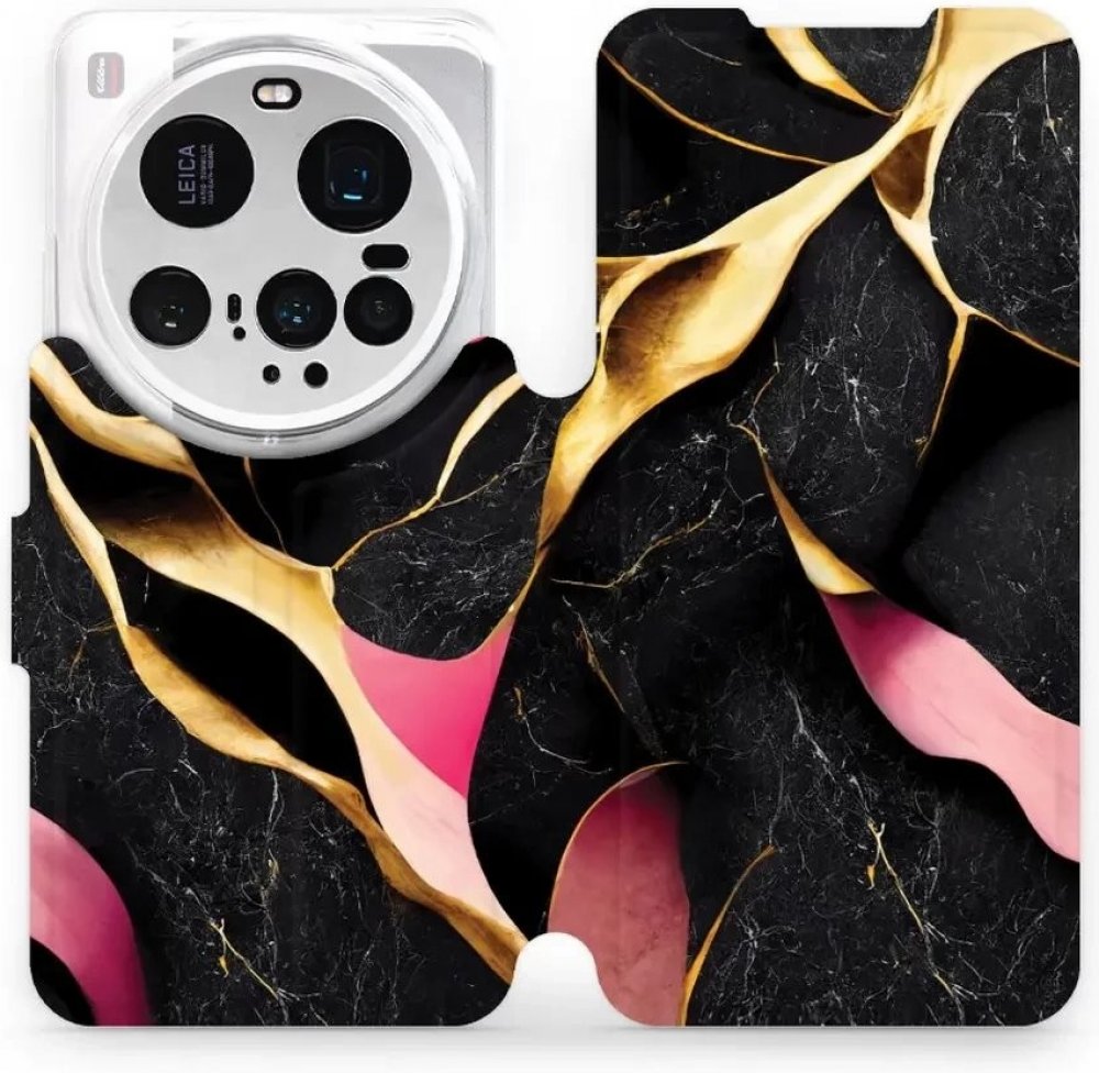Knížkové pouzdro, obal, kryt Mobiwear na mobil Xiaomi 15 Ultra - VP35S Černý a zlatavý mramor - ochrana celého telefonu, funkce stojánku, odolná TPU vanička, magnetické zavírání, elegantní design