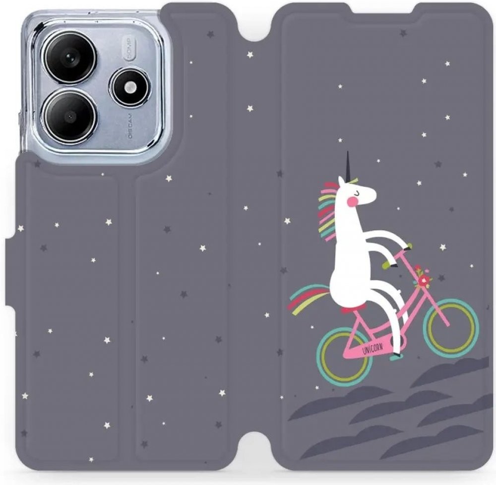 Knížkové pouzdro, obal, kryt Mobiwear na mobil Xiaomi Redmi Note 14 5G - V024P Jednorožec na kole - ochrana celého telefonu, funkce stojánku, odolná TPU vanička, magnetické zavírání, elegantní design