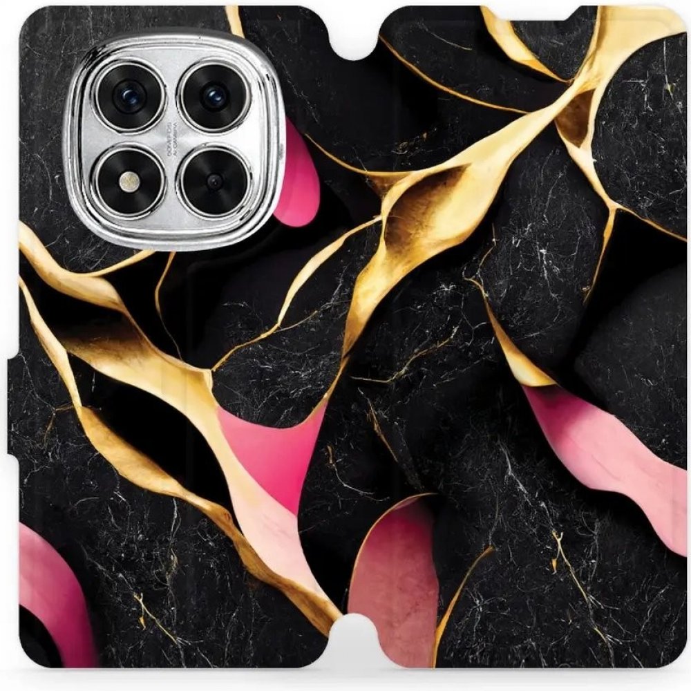 Knížkové pouzdro, obal, kryt Mobiwear na mobil Xiaomi Redmi Note 14 Pro 5G - VP35S Černý a zlatavý mramor - ochrana celého telefonu, funkce stojánku, odolná TPU vanička, magnetické zavírání, elegantní design