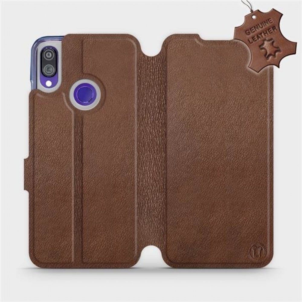 Luxusní flip knížkové kožené pouzdro, obal a kryt pro mobil Xiaomi Redmi Note 7 - Hnědé - ochrana celého telefonu, funkce stojánku, odolná TPU vanička, magnetické zavírání, elegantní kožený design