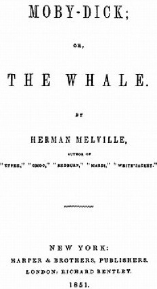 Moby-Dick is an 1851 novel by Herman Melville. The story tells the adventures of the wandering sailor Ishmael and his voyage on the whaling ship Pequod, commanded by Captain Ahab. Often considered the embodiment of American Romanticism, Moby-Dick was first published by Richard Bentley in London on October 18, 1851 in an expurgated three-volume edition titled The Whale, and later as one massive volume, by New York City publisher Harper and Brothers as Moby-Dick; or, The Whale on November 14, 1851. This a photo-mechanical reprint of that edition. The first line of Chapter One-"Call me Ishmael."-is one of the most famous in literature. Although the book initially received mixed reviews, Moby-Dick is now considered one of the greatest novels in the English language and has secured Melville's place among America's greatest writers.