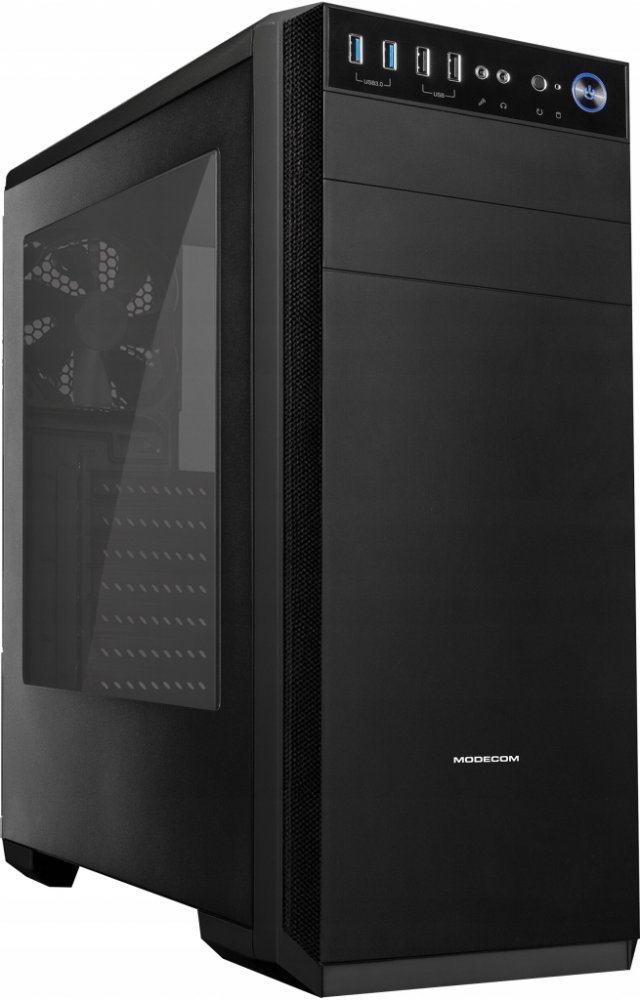 Kvalitní počítačová skříň s oknem Modecom OBERON PRO, miditower, pozice: externí 1x 5,25“, interní 2x 3,5“ a 3x 2,5“; prostor pro až 5 ventilátorů (2 předinstalované), 7 rozšiřujících slotů na karty, přední panel: 2x USB 2.0, 2x USB 3.0 + audio konektory; kompatibilní se základními deskami ATX, micro ATX a Mini ITX.