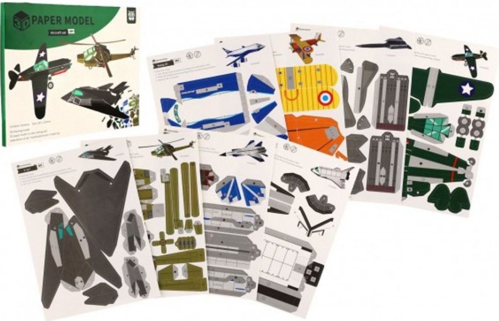 Při sestavování papírových 3D modelů si děti procvičí smysl pro prostor, kreativitu i představivost. Předlohy jsou vysekány do pevného papíru, nejsou tak potřeba nůžky. V papírových deskách najdete 8 ks předloh letadel.