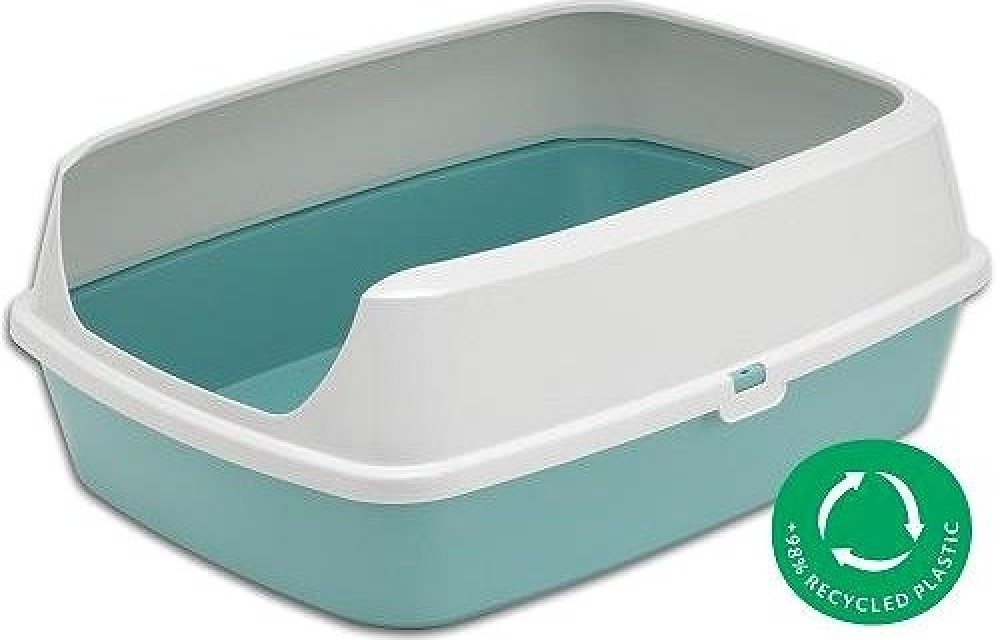 Otevřené WC s extra vysokým okrajem zamezujícím vyhazování podestýlky ven. Je součástí ucelené řady +98% RECYCLED PLASTIC, která sleduje moderní trend výrobků z recyklovaných materiálů.
