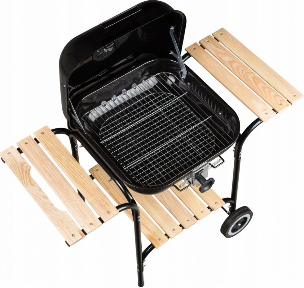 Dřevěné rukojeti a kolečka umožňují bezpečné přemísťování grilu i při zahřátí.