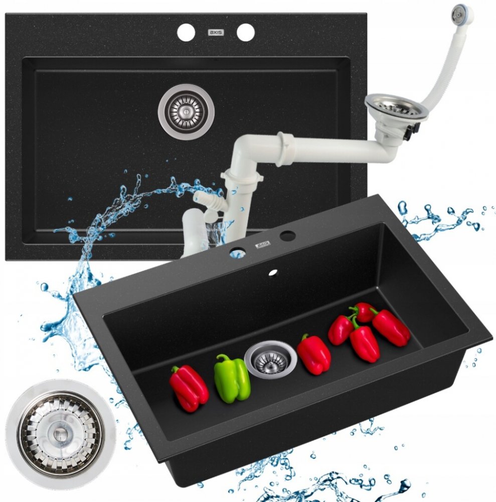 GRANITOVÝ DŘEZ 73x50 Černý Jednokomorový VELKÝ V SADĚ SE SIFONEM✅ Údaje o produktu: