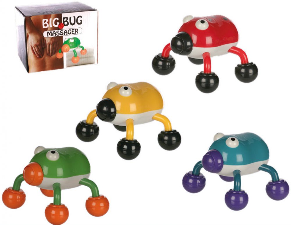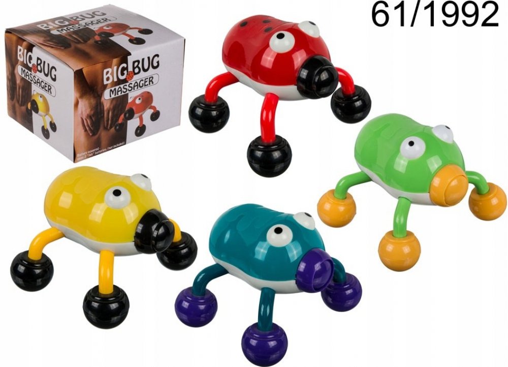 Pořiďte si tuto roztomilou masážní pomůcku ve tvaru brouka, která podpoří krevní oběh masírované části, zrychlí látkovou výměnu a urychlí regenaraci. Skvěle s ní namasírujete například oblast mezilopatkových svalů, šíje, hýždí, stehen nebo lýtek. Tlakem na pomůcku docílíte příjemnější masáže. Napájení je řešeno pomocí 2 baterií AA, které nejsou součástí balení.