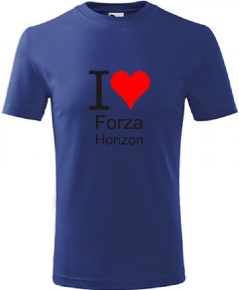 Modré dětské tričko I love Forza Horizon. nabízené velikosti jsou 4 roky, 6 let, 8 let, 10 let, 12 let. Výběr z 13ti barev. Tričko patří do kategorií Trička I love závodní hry - dětská, . Technologie potisku: Tisk na tričko je realizován pomocí termolisu a potisk je velice trvanlivý.