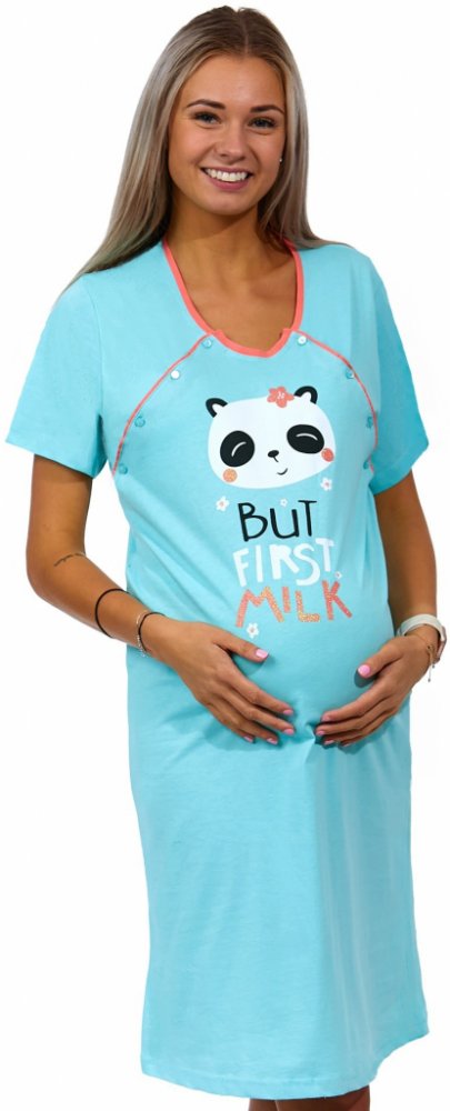 Modrá kojící a těhotenská košilka na knoflíky BUT FIRST MILK